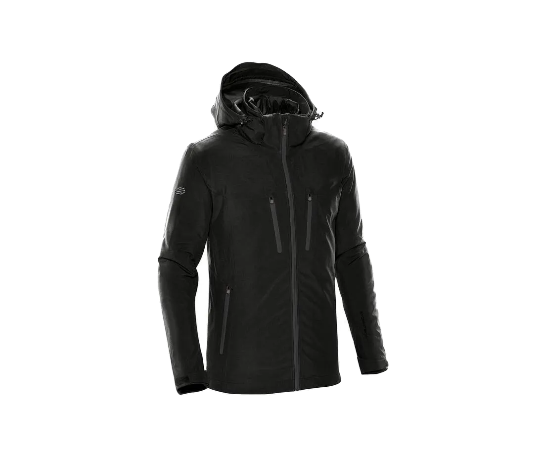 Coutures entièrement scellées. Coudes articulés. Zips étanches. Capuche détachable ajustable. Blouson intérieur matelassé amovible.