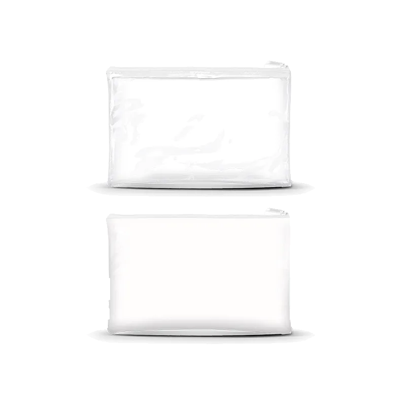 Pochette élégante transparente ou translucide zipée blanc. Marquage en 1 couleur.