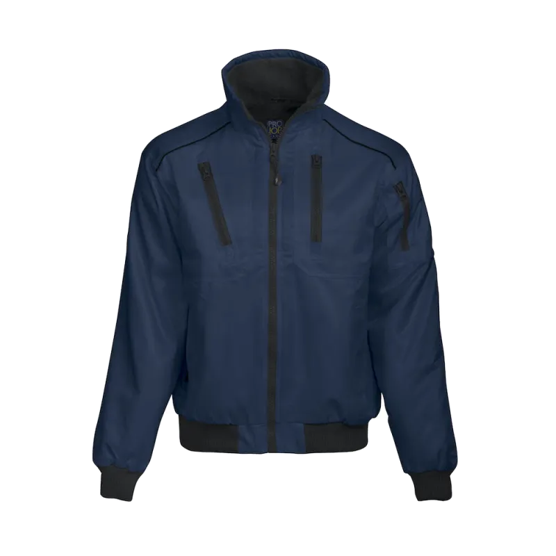 Blouson Pilote Homme - Grandes poches de poitrine extérieures, une avec fermeture zippée en diagonale et poche intérieure pour téléphone portable. 250 g/m2 Fermeture sur toute la longueur jusqu’au col. Poche sur la manche pour téléphone portable et stylos. Deux poches latérales profondes. Poches intérieures avec espace pour portefeuille et bloc-notes. Doublure polaire, manches matelassées. Fleece à l’intérieur du col. Bord cotes aux poignets et à la taille. Bande réfléchissante dans empiècement. La doublure peut être ouverte pour faciliter l’impression et la broderie.