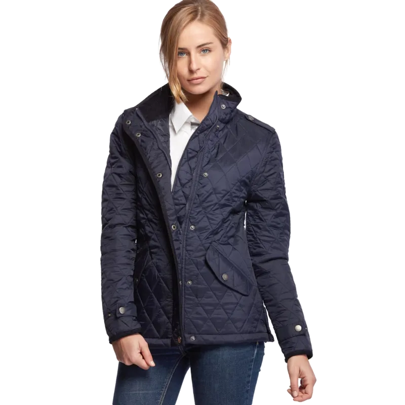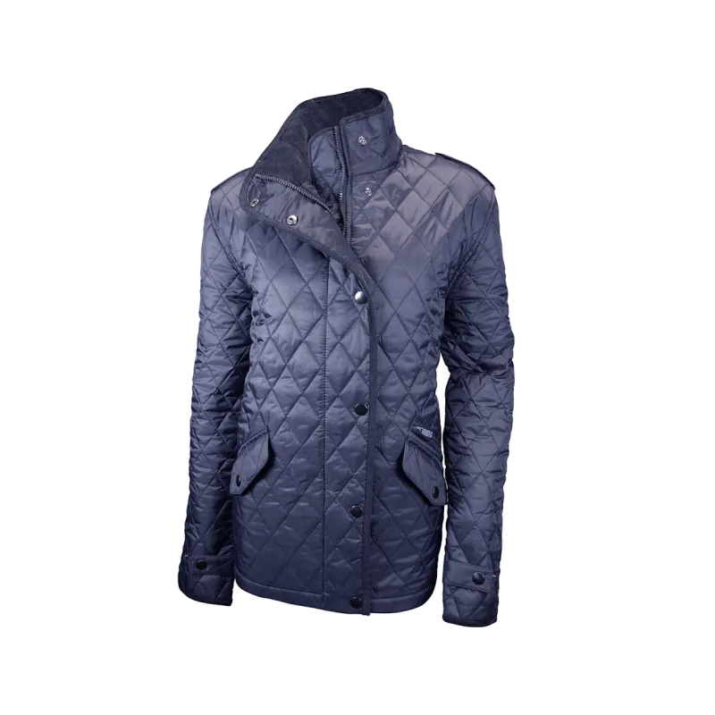 Blouson matelassé diamant femme. Col et biais velours. Face externe en nylon, garnissage ouatine de polyester, doublure polyester, 2 poches avec rabat, 1 poche zippée. 2 poches intérieures. Doublure col velours. Serrage poignet par pression. Ouverture d'aisance sur les côtés. Disponible sur stock et livré sous 24/48h sans personnalisation, coloris disponibles : Anthracite, Marine dans les tailles S, M, L, XL