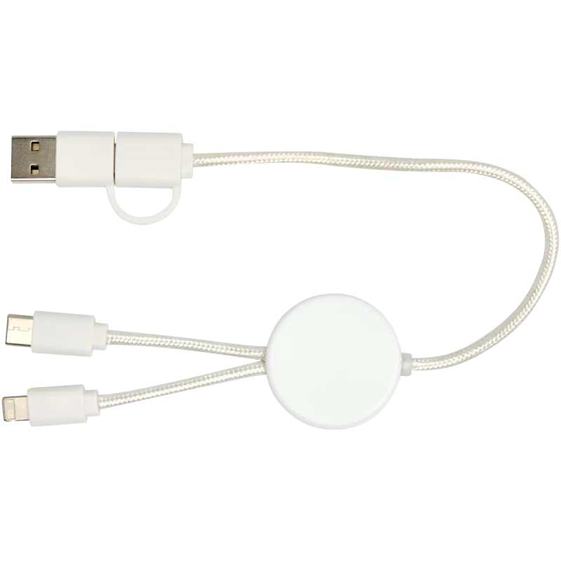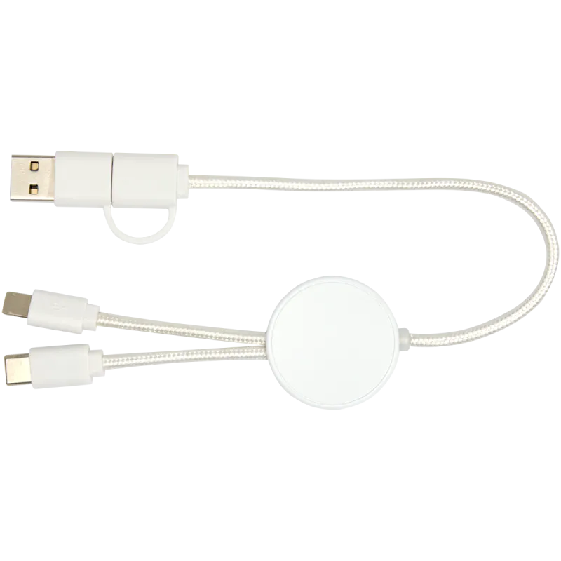 Le câble 5-en-1 de synchronisation des données et de charge rapide 27 W Citala est fabriqué à partir de plastique recyclé. Ce câble est doté de connecteurs d’entrée USB-A et Type-C combinés à un connecteur de sortie Type-C et combi Lightning/Micro USB. L’USB-A vers l’USB-C fournit une puissance de sortie maximale de 27 W. Toutes les autres options de connexion offrent une puissance maximale de 15 W. Compatible avec CarPlay et Android Auto. Que vous soyez à la maison, au bureau ou en déplacement, le câble Citala offre performance et style dans un ensemble compact. Longueur du câble : 30 cm.