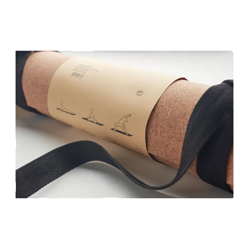 Tapis d'exercice de yoga en liège et TPE présenté dans un emballage en papier avec instructions. Épaisseur 0,4 cm. Comprend un support de corde d'exercice/ sangle en coton. Le liège est un matériau 100% naturel. En raison de sa structure et de la porosité de sa surface, le résultat final de l'impression par article peut présenter des différences.
