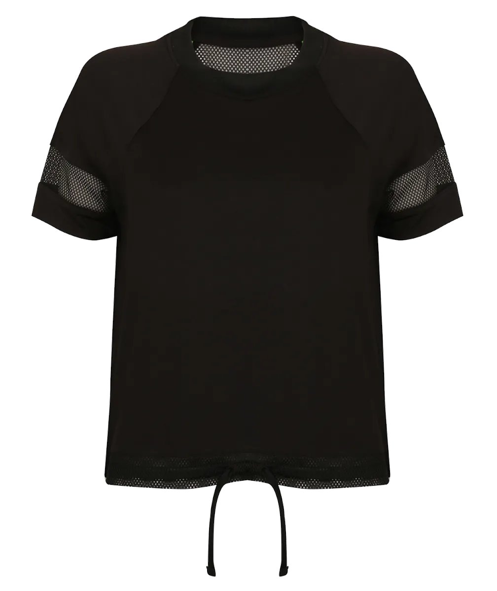 Déchirez tout avec notre t-shirt, pour un look super tendance. Les manches et le dos sont faits de bandes en maille et d’un cordon de serrage à la taille pour plus de polyvalence. Complétez le look avec nos leggings pour femmes TL672.