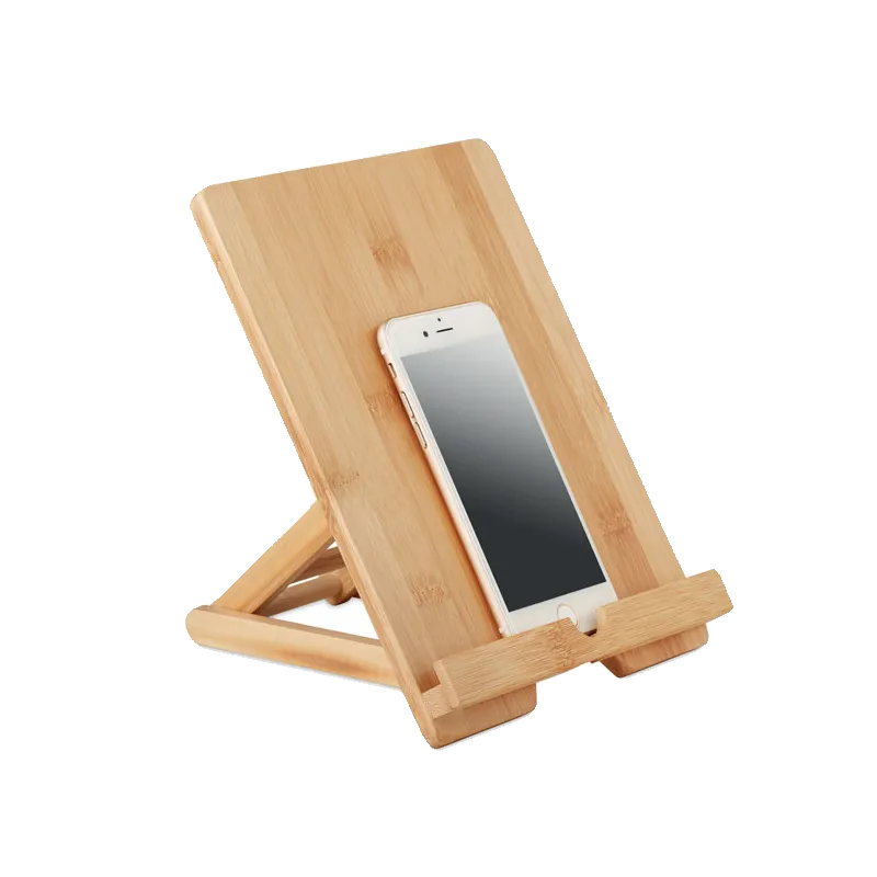 Support pliable pour tablette ou smartphone en bambou. Le bambou est un produit naturel, et présente de légères variations de couleur, de décoration et de tailles.
