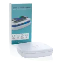 Stérilisateur UV-C multifonctionnel qui tue jusqu'à 99,9% des bactéries placées à l'intérieur de l'appareil. Il vous suffit de placer des objets comme des écouteurs, des bijoux, des montres et des masques à l'intérieur pour les stériliser grâce à la technologie UV-C. Vous pouvez choisir de faire un nettoyage rapide en 90 secondes ou un nettoyage complet en 5 minutes. Les 2 LED UV-C à l'intérieur sont non toxiques, fabriquées sans mercure et ont un cycle de vie de 10 000 heures. Son design garantit également que la lumière LED UV-C s'éteint automatiquement lorsque la boîte est ouverte, de sorte que l'utilisateur ne soit pas exposé à la lumière UV-C. En plus du stérilisateur, il y a un chargeur sans fil de 5W pour charger votre téléphones. Câble de 100 cm en TPE de type C inclus. Entrée : 5V/1.5A ; Sortie : 5/1A - 5W.