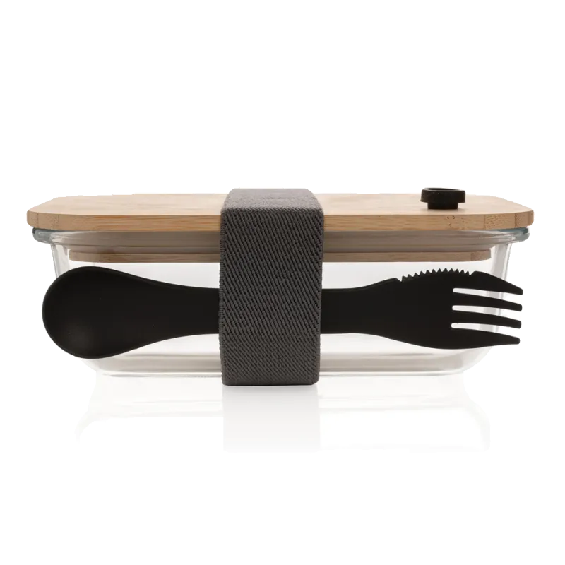 Boîte repas en verre avec couvercle en bambou