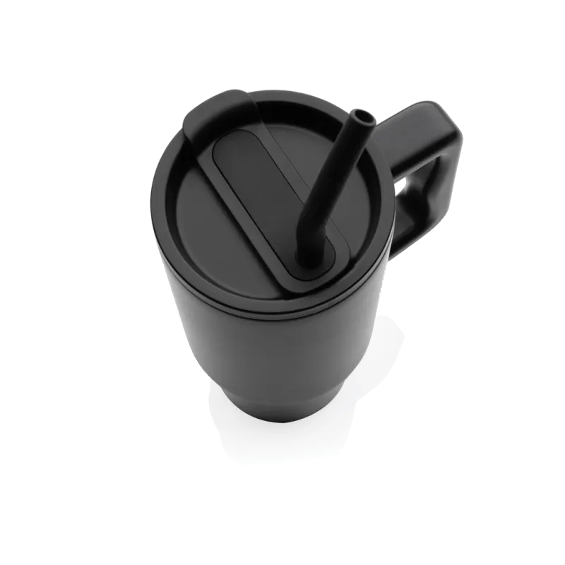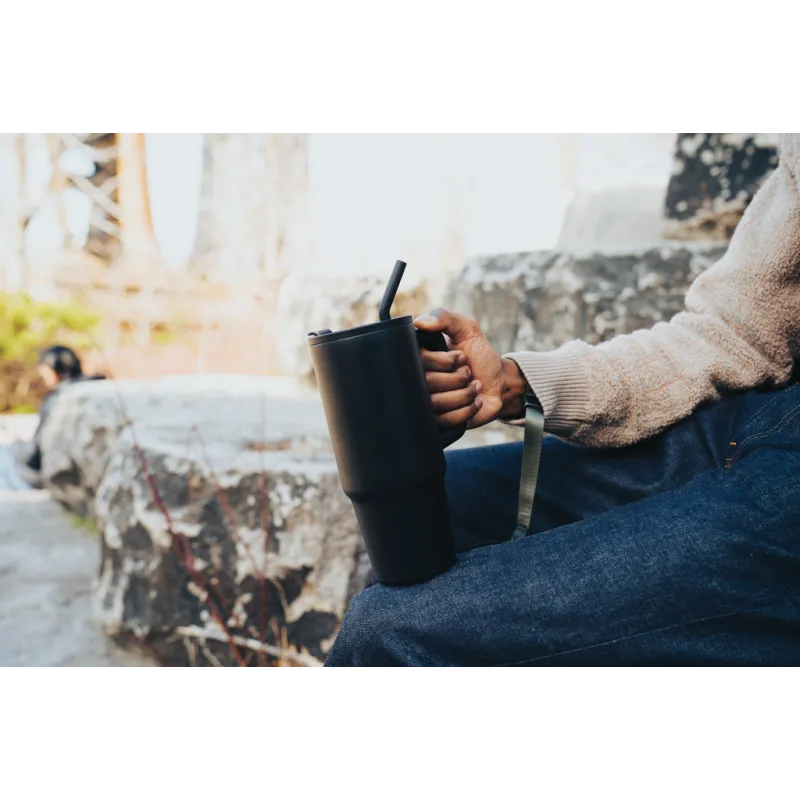 Mug 900ml à double paroi fabriqué en acier inoxydable recyclé durable, équipé d'un couvercle, d'une paille et d'un embout de paille en silicone. Polyvalent et isotherme, il convient aussi bien aux boissons chaudes (5 heures) qu'aux boissons froides (15 heures). Le couvercle à vis a une double fonction : il offre un bec verseur pratique ou la possibilité d'utiliser une paille. Découvrez sa contenance - ni trop grande, ni trop petite. Sa poignée confortable et sa base mince lui permettent de s'adapter parfaitement à la plupart des porte-gobelets, vous assurant ainsi de rester hydrate quel que soit votre activité. Pour un entretien optimal, il est recommandé de le laver à la main. Fabriqué avec RCS (Recycled Claim Standard). La certification RCS garantit une chaîne d'approvisionnement entièrement certifiée pour les matériaux recyclés. Contenu recyclé total : 70 % sur la base du poids total de l'article. Sans BPA.