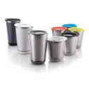 Dia est un mug 350ml à double parois en acier inoxydable 304 à l’intérieur, son design permet de le démonter complètement pour le recycler et garder un monde plus propre. Sans BPA. Modèle déposé®