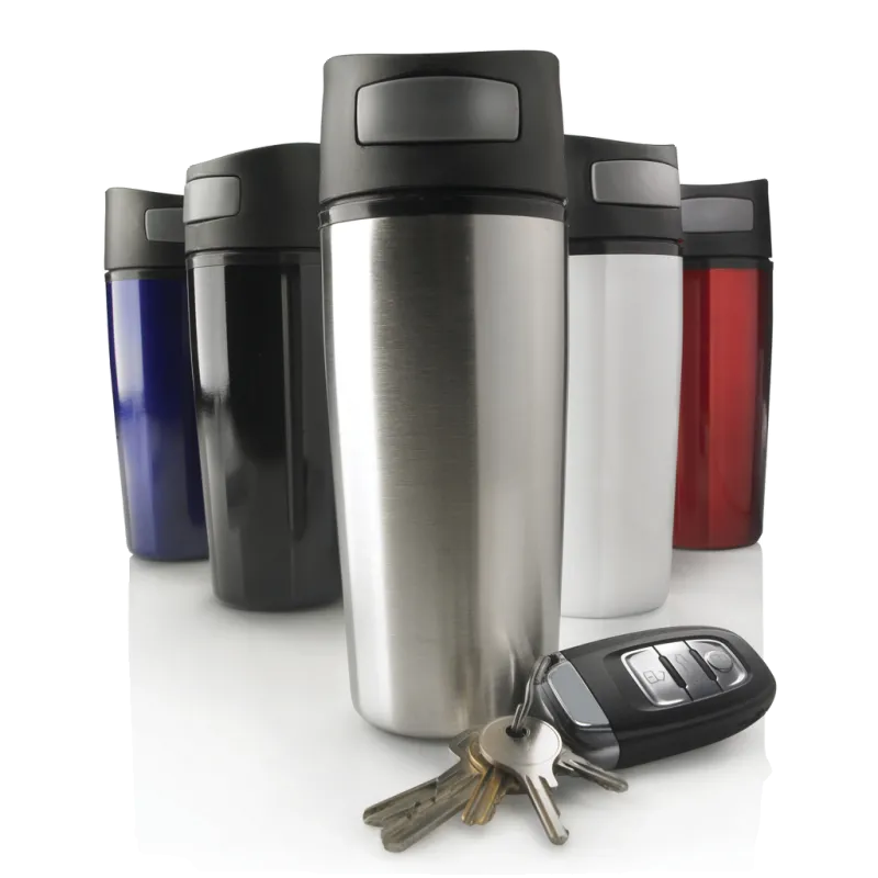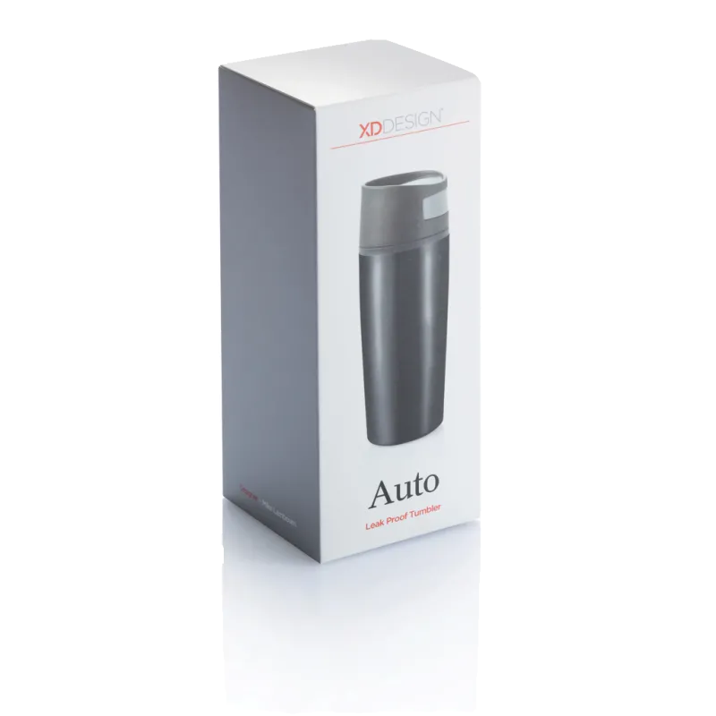 Auto est un mug antifuites de 300ml, éxtérieur en acier inoxydable 201 avec une couche noir, intérieur en PP, possède un système de poussoir innovant qui vous permet de le contrôler à l’aide d’une seule main. Idéal pour les voitures. Garde les boissons chaudes jusqu'à 3h et froides jusqu'à 6h. Modèle déposé®