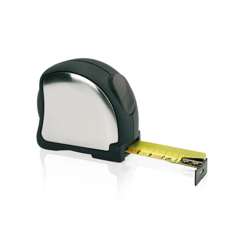 Mètre acier inoxydable 5m/25mm avec boîtier en acier inoxydable et caoutchouc, avec clip ceinture.
