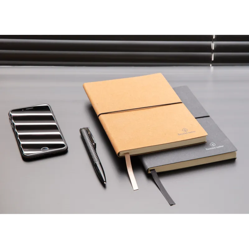 Carnet de notes A5 avec couverture en cuir recyclé et reconstitué 80 feuilles/160 pages de 75g/m² (papier recyclé couleur crème).