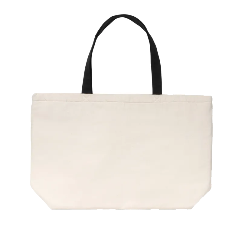Grand sac tote isotherme en toile recyclée 285 g/m² Impact Aware™ permet de conserver au frais vos aliments et boissons préférés, des pique-niques aux voyages en voiture, puis se replie à plat pour gagner de la place. Peut contenir jusqu'à 24 canettes ou jusqu'à 6 bouteilles de vin. Avec le traceur AWARE™ qui valide l'utilisation authentique de matériaux recyclés. La toile recyclée est non teintée et utilisée à l'état brut, sans produits chimiques issus de la teinture ou du blanchiment. 2 % des recettes de chaque produit Impact vendu seront reversés à Water.org. Composition 70% coton recyclé, 30% polyester recyclé ; Isolation feuille d'argent.